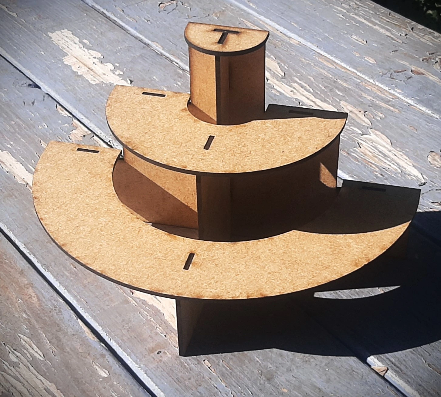 Introducing our exceptional 3-Tier Hardwood Retail Stand, a must-have for showcasing your merchandise with elegance and efficiency. Meticulously crafted from high-quality 3mm hardwood, this stand combines durability and style to provide a stunning display solution. Featuring a unique half-circle shape with five spacious levels, each measuring 5cm in breadth, this stand offers optimal space utilization while adding a touch of sophistication to your retail space or home decor.