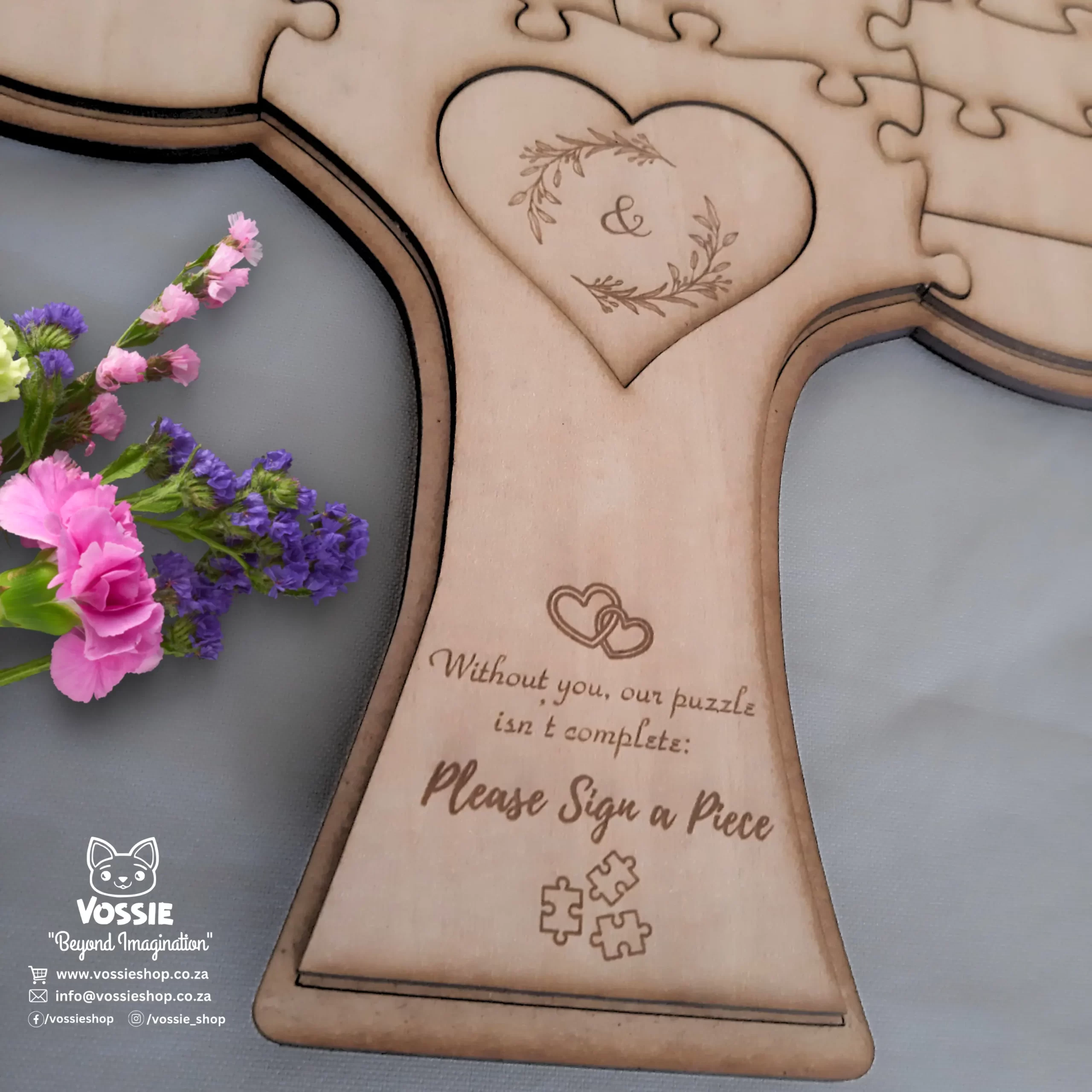 Add a unique and interactive touch to your wedding with our Jigsaw Puzzle Tree Guestbook! Each guest can write a heartfelt message on a puzzle piece, creating a beautiful and personalized keepsake. Once assembled, this charming tree puzzle forms a lasting memory of your special day, filled with love and well wishes from friends and family.