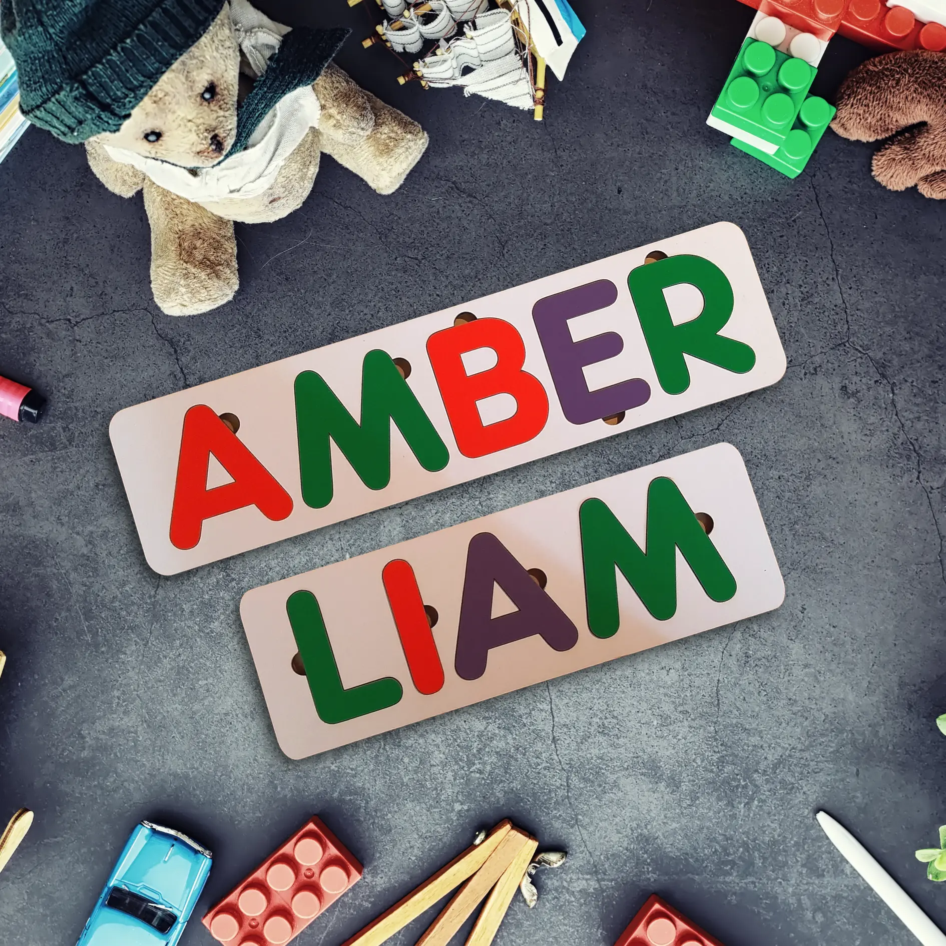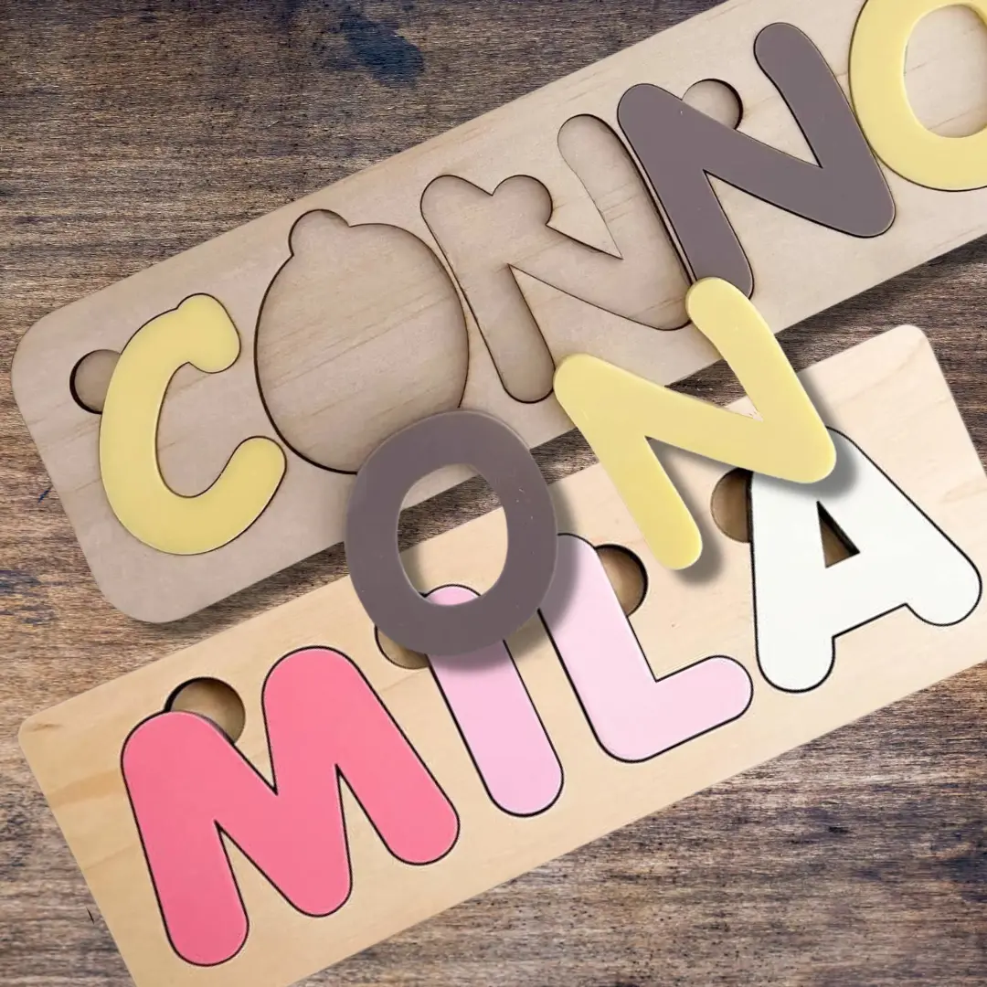 1. Personalized Learning: Capture the magic of your child’s name in a puzzle! Each name is meticulously crafted into this unique toy, providing a fun way for your child to learn and recognize the letters of their name.