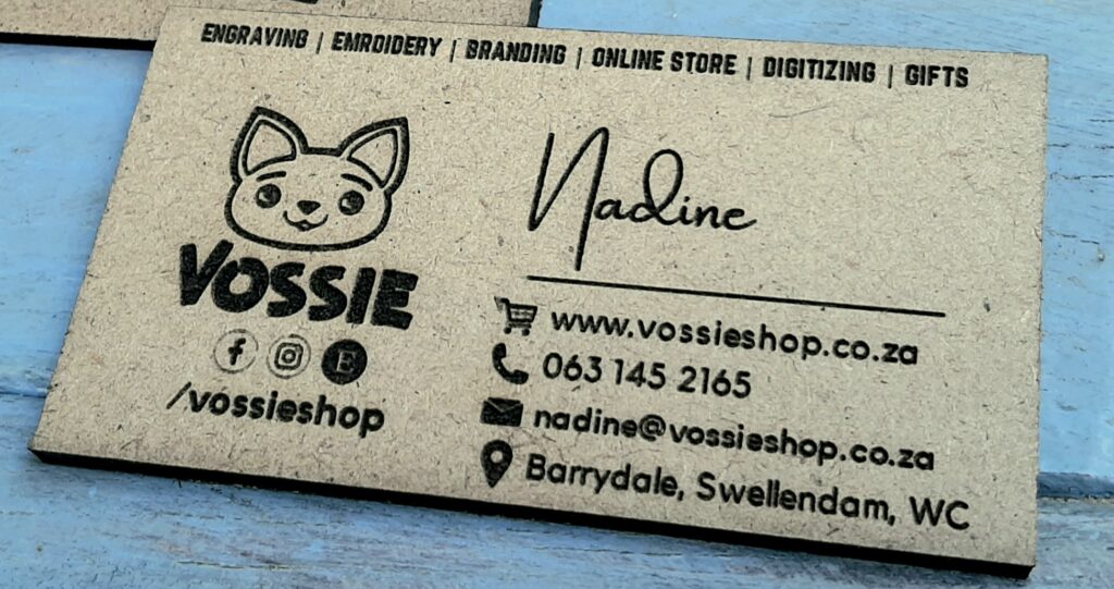 Let’s not forget about the power of a well-designed business card! They are a reflection of your brand and an opportunity to make a memorable impression. Our laser-cut and engraved business cards are meticulously crafted to capture attention and leave a lasting impact. Whether you prefer a sleek and sophisticated design or a bold and unique approach, our business cards will elevate your professional image and set you apart from the competition. Let your business card be a conversation starter and a tangible representation of your brand’s excellence.